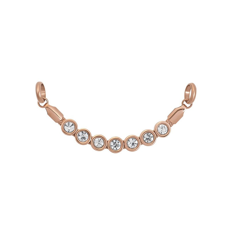 Op deze streng zijn ronde vormen bevestigd die zijn ingelegd met zilverkleurige steentjes.