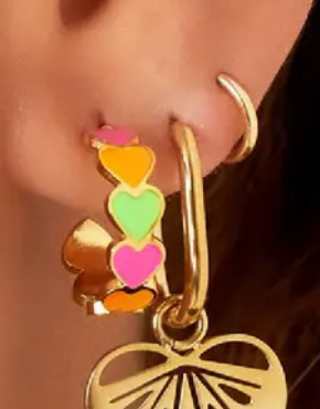 - Hoe leuk zijn deze kleurrijke hartjes oorbellen in de kleur rose/groen/oranje
