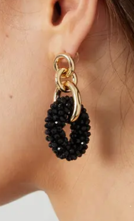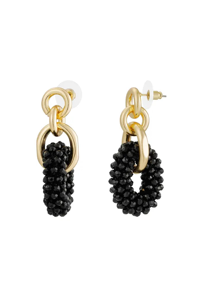 De dubbele ringen geeft de oorbel een speels karakter en de kralen maken de oorbel weer chic.