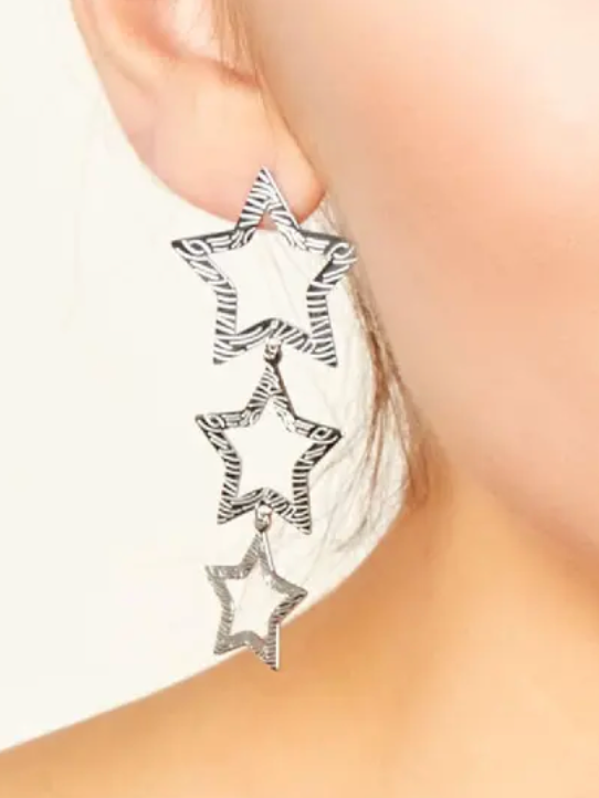 Hoe mooi zijn deze gouden oorbellen met bedels in de vorm van drie sterren!