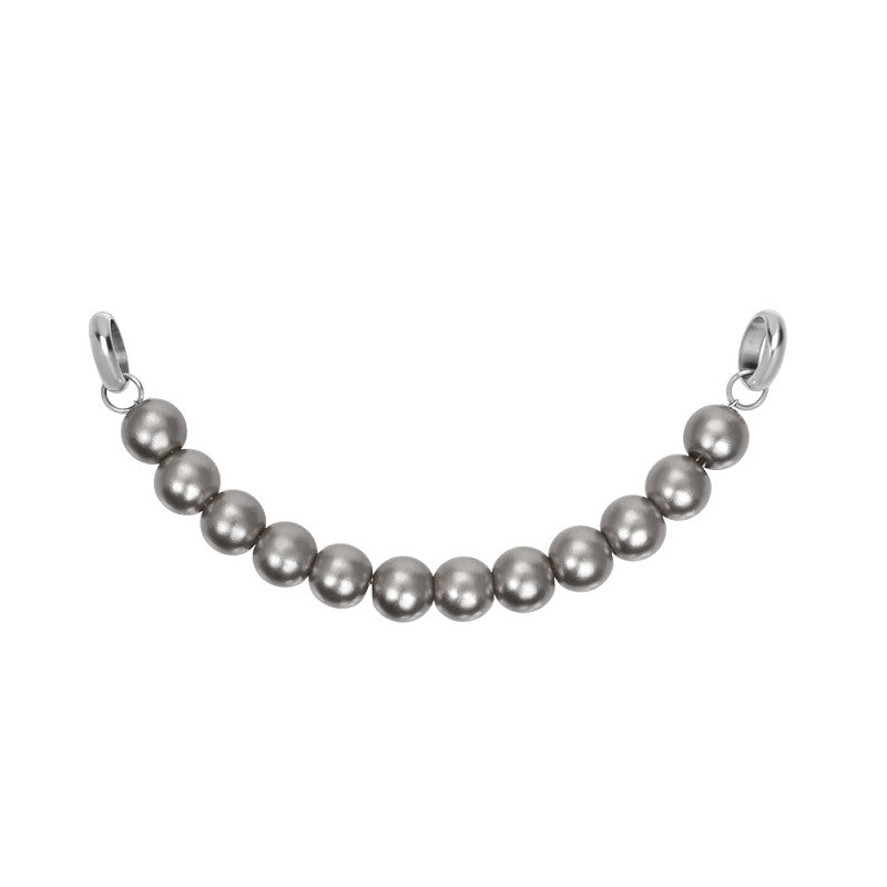 - De Ketting Anna Grey van iXXXi Connect bestaat uit een streng met grijskleurige parels en twee schakels gemaakt van stainless steel.